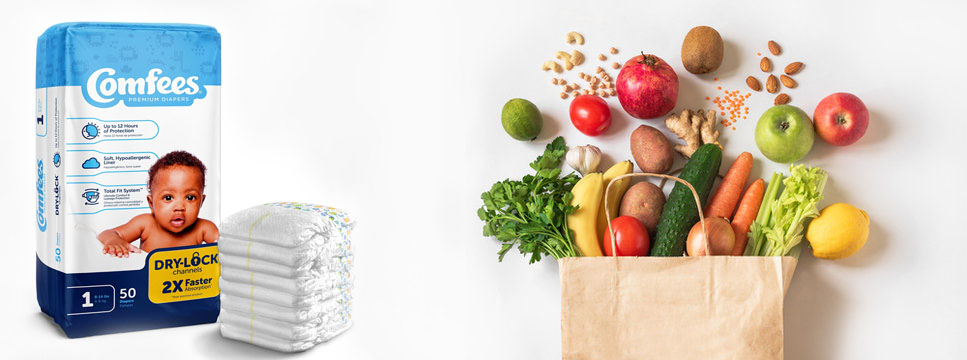 Paper towels, toilet paper, aluminum foil, sandwich bags